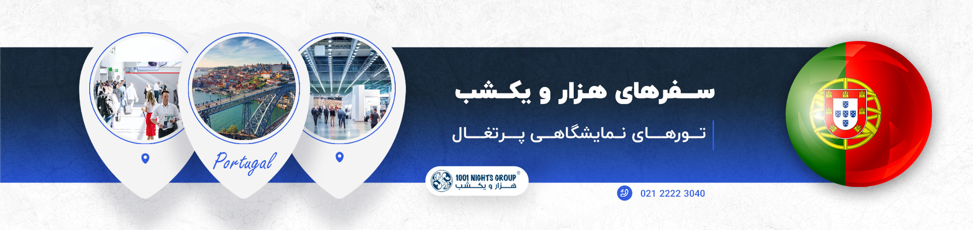 برای رزرو تورهای نمایشگاهی پرتغال مدنظر خود و کسب اطلاعات بیشتر در مورد پکیج‌ها و تقویم نمایشگاه‌ها، با کارشناسان آژانس سفرهای هزار و یکشب مجری مستقیم تورهای نمایشگاهی اروپا و تورهای توریستی اروپا تماس بگیرید. فرصت‌های تجاری و نوآوری لیسبون و پورتو در انتظار شماست!