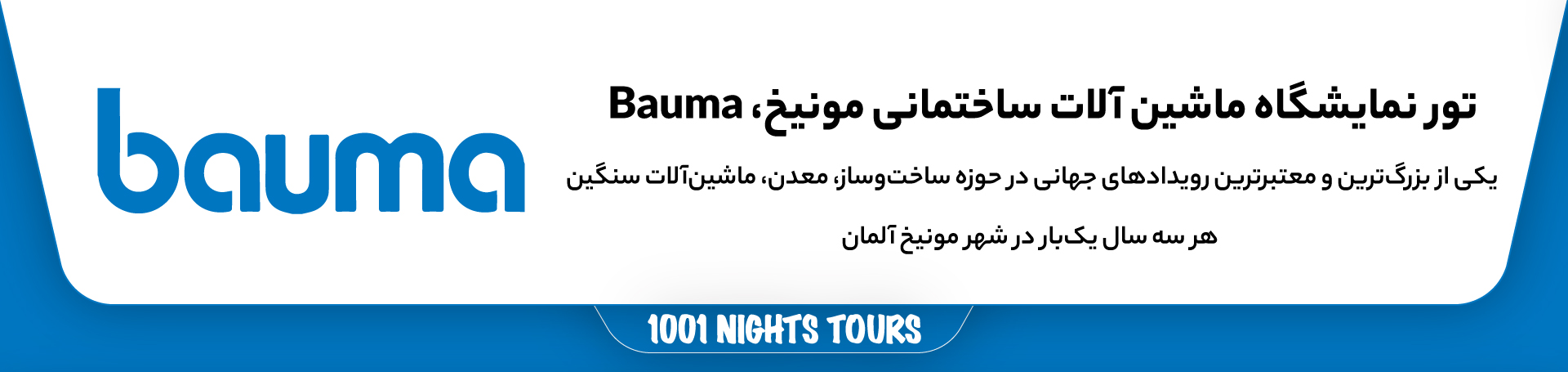 برای افرادی که قصد دارند تجربه‌ای بی‌نظیر از حضور در نمایشگاه Bauma داشته باشند، آژانس سفرهای هزار و یک شب تورهای ویژه‌ای ارائه می‌دهد.