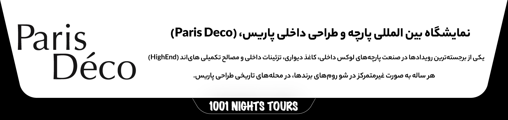آژانس سفرهای هزار و یکشب با تمرکز بر موفقیت فنی و تجاری شما، آماده ارائه خدمات رزرو تور تخصصی نمایشگاه بین المللی پارچه و طراحی داخلی پاریس است.
